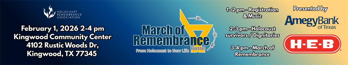Join us for the March of Remembrance on February 1, 2026 from 2-4pm at our new starting location at the Kingwood Community Center for a powerful, free community gathering that honors memory, elevates truth, and calls us to moral courage!